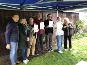 Abschließend luden Maria und Heinz die Anwesenden zu sich nach Hause auf Kaffee und Kuchen ein. Bei ausgedehnten Gartenspaziergängen, Füße im Schwimmteich baumeln lassen und gemütlichen Gesprächen ging dieser wunderschöne Tag dem Ende entgegen.