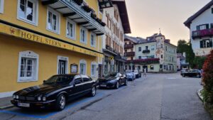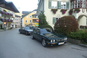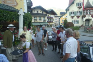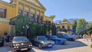Nach der genüsslichen Besichtigungsrunde startete der Konvoi durch das wunderschöne Salzkammergut. Vorbei am Wolfgangsee gelangten wir zeitgerecht beim ersten Etappenziel – die Kaiservilla in Bad Ischl. Hannes Schaffer konnte organisieren, dass die automobilen Schmuckstücke direkt im Park vor der Kaiservilla parken durften – ein Erlebnis für die Teilnehmer aber auch für die verwunderten Besucher der Sehenswürdigkeit.