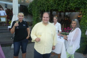 Der Tross setzte sich durch den kaiserlichen Park in Bewegung. Die malerische Strecke durch das Weissenbachtal und kräuseliges Kurvengeschlängel vorbei am Attersee und Mondsee ließ die Gruppe beim Gasthof zur Post in St.Gilgen zeitgerecht einfallen. An dieser Stelle bedanken wir uns vielmals bei unserem Mitglied Franz Mayrhofer für die reservierten Parkmöglichkeiten am Mozartplatz direkt vor dem Hotel Restaurant und den herzlichen Sektempfang.